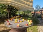 Tisch mit Gläsern, Karaffen und Äpfeln