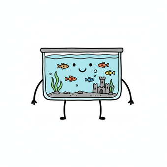 Das Bild zeigt ein gezeichnetes Aquarium. Das Bild wurde mittels einer KI (Gemini) erstellt und ist unter CC0 lizenziert. Weitere Bilder aus Herrn Emrich-Försters Bild-Archiv findet man hier: https://pix.foerster.rocks/