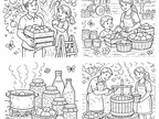 Das Bild zeigt gezeichnete Motive zum Begriff Apfelsaft. Das Bild wurde mittels einer KI (Gemini) erstellt und ist unter CC0 lizenziert. Weitere Bilder aus Herrn Emrich-Försters Bild-Archiv findet man hier: https://pix.foerster.rocks/