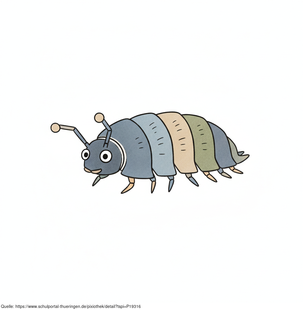 Das Bild zeigt eine gezeichnete Assel. Das Bild wurde mittels einer KI (Gemini) erstellt und ist unter CC0 lizenziert. Weitere Bilder aus Herrn Emrich-Försters Bild-Archiv findet man hier: https://pix.foerster.rocks/
