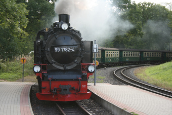 Abgebildet ist die Schmalspurbahn Rasender Roland.