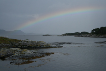 Norwegen: Regenbogen über dem Foerdefjord
