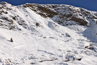 Das Foto gehört zur Serie "Lawinenschutz" mit Fotos aus den Gegenden Walmendinger Horn (Österreich, Kleinwalsertal) und Fellhorn (Deutschland). Es zeigt Abrissbereiche einer Schneelawine (Schneebrett) an einem Berghang. Es gelten die Nutzungsbedingungen der Mediothek und Pixiothek.
