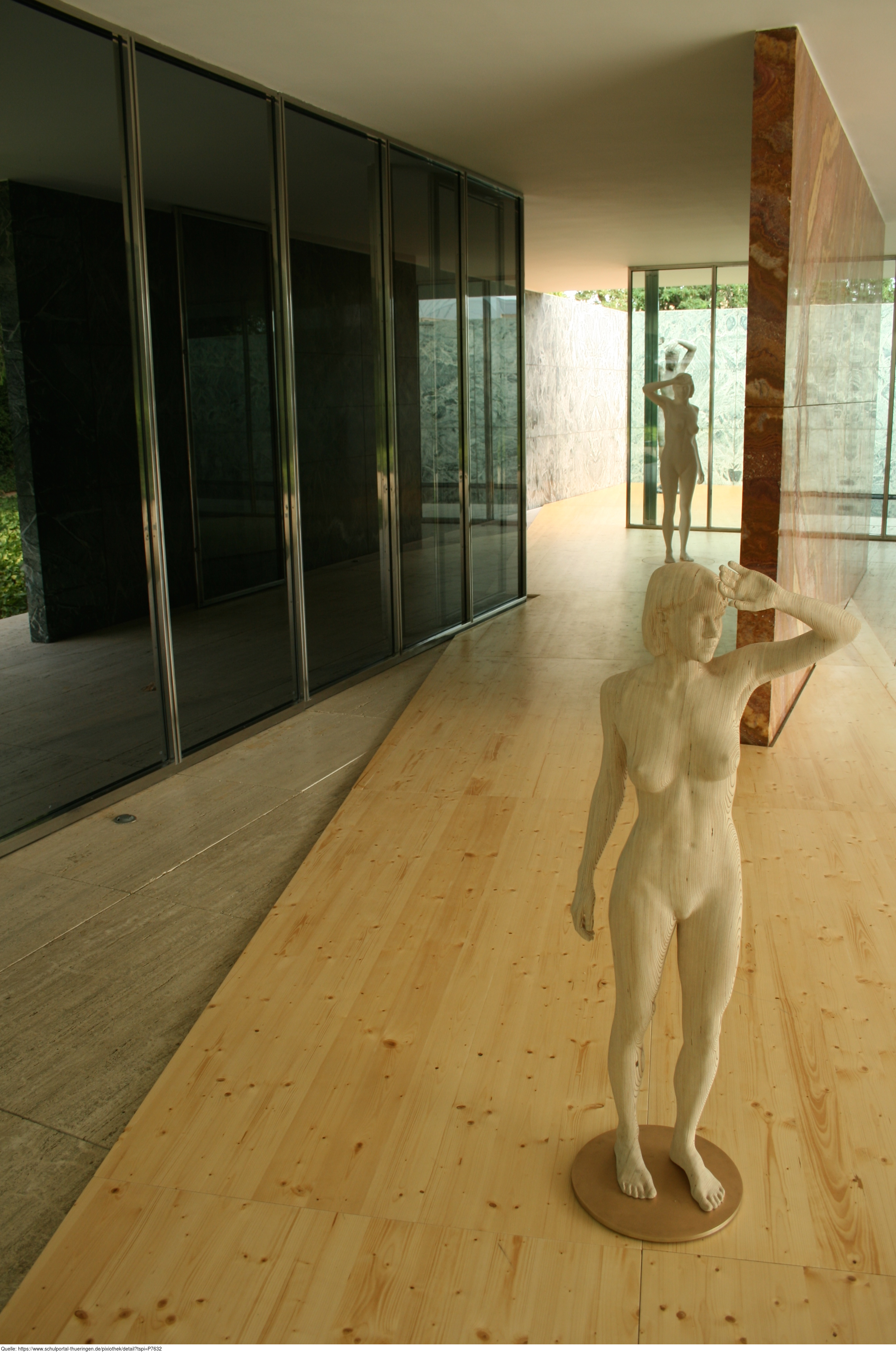 Barcelona-Pavillon: Georg Kolbes Skulptur "Der Morgen" in Sichtachse