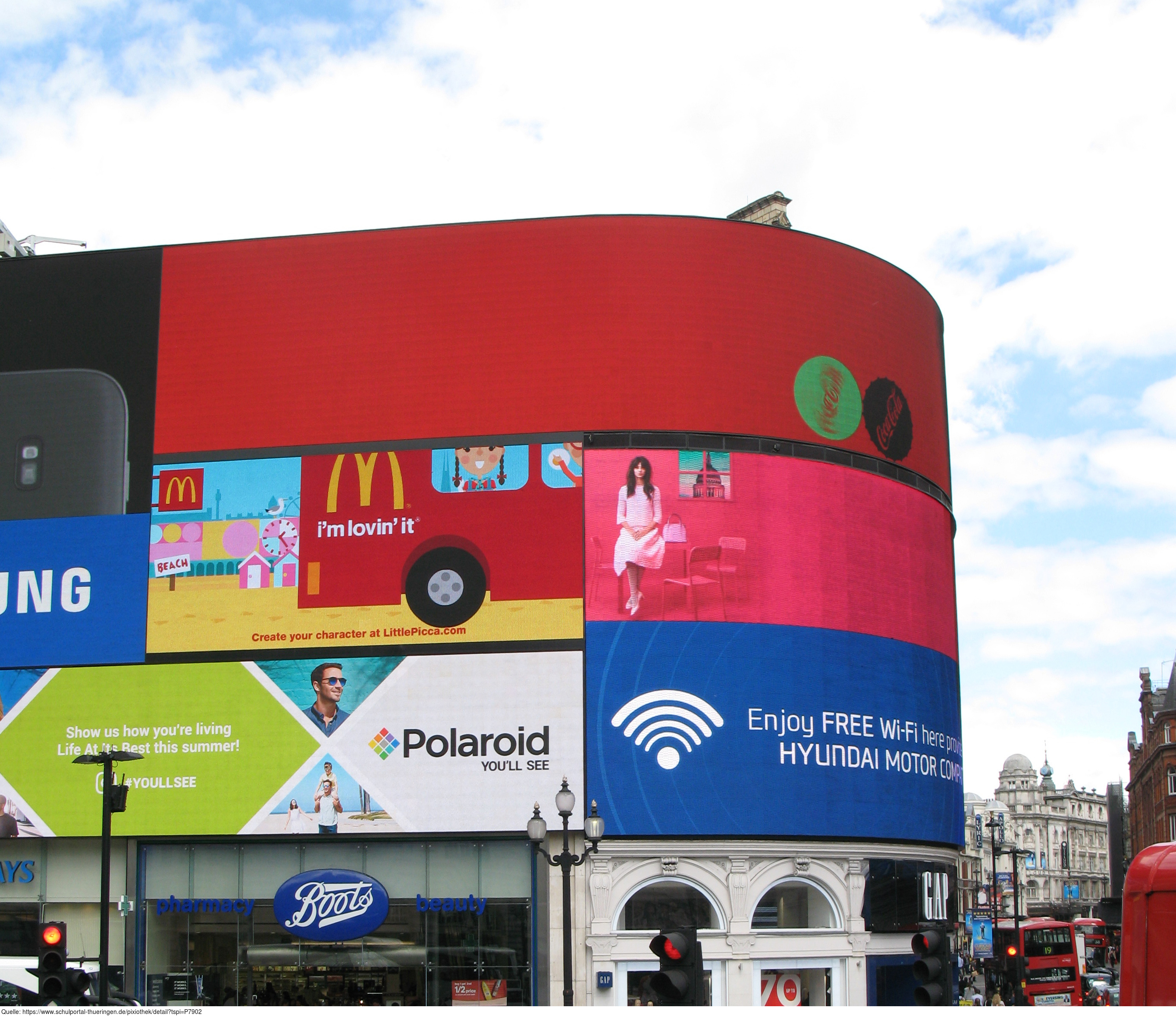 Das Foto gehört zur Serie London 2016. Es zeigt die Werbefläche am Piccadilly Circus (Regent Street/Shaftesbury Ave, Soho). Es gelten die Nutzungsbedingungen der Mediothek und Pixiothek.