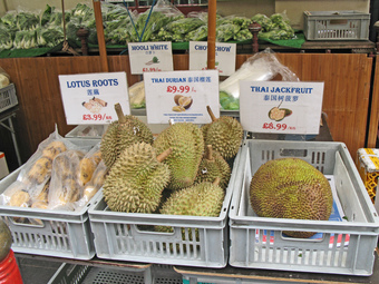 Das Foto gehört zur Serie London 2016. Es zeigt ein Obst- und Gemüsegeschäft in der Gerrard St, London W1D 6JJ. Es gelten die Nutzungsbedingungen der Mediothek und Pixiothek.