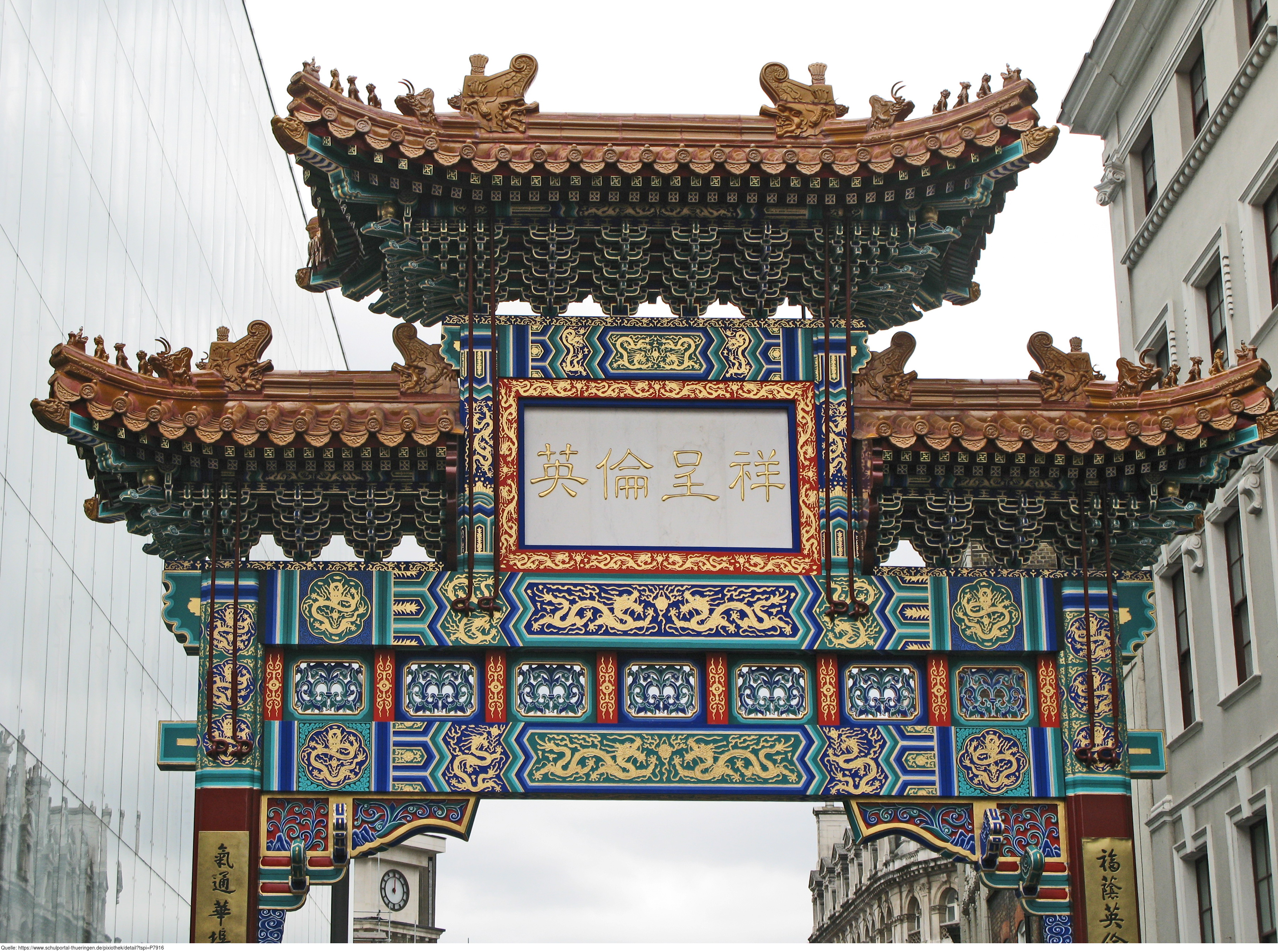 Das Foto gehört zur Serie London 2016. Es zeigt Chinatown Gate, 10 Wardour St, London W1D 6BZ. Es gelten die Nutzungsbedingungen der Mediothek und Pixiothek.