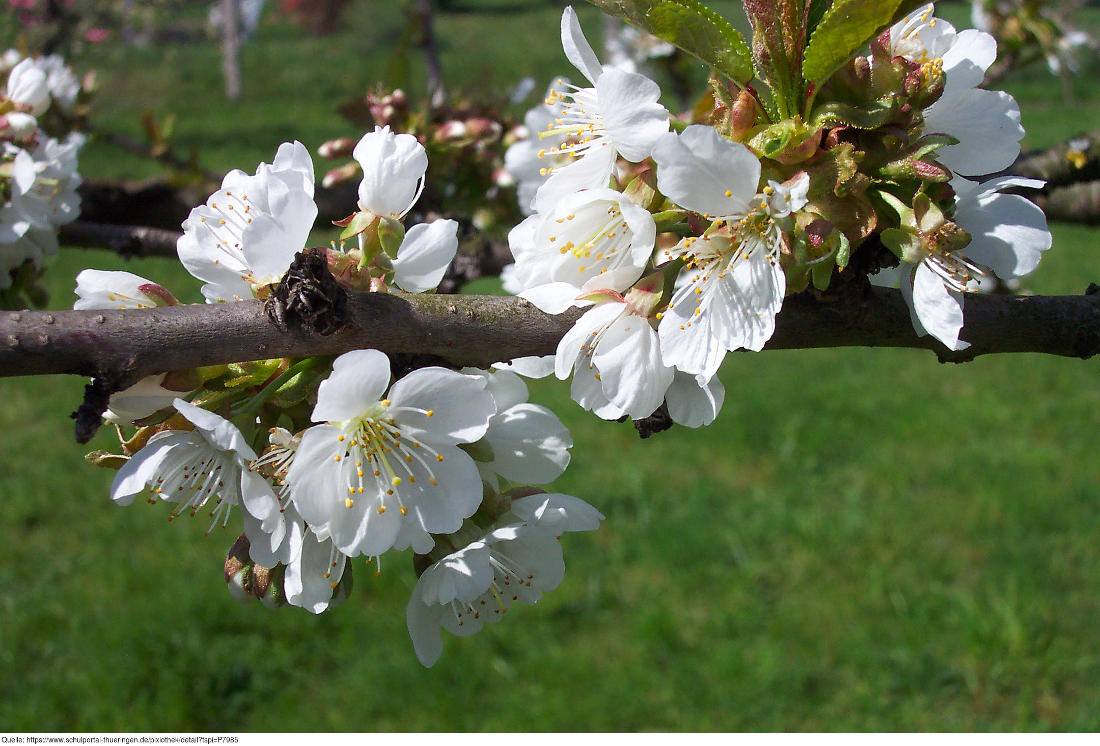 Das Foto gehört zur Serie Obstbäume. Es zeigt Kirschblüten der Süßkirsche. Es gelten die Nutzungsbedingungen der Mediothek und Pixiothek.