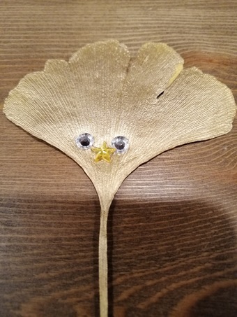 Ein mit Sprühlack vergoldetes Gingkoblatt. Bastelvorlage für Tischdekoration. Es gelten die Nutzungsbedingungen der Mediothek und Pixiothek.
