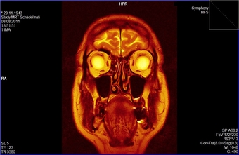 Die Magnetresonanztomographie (MRT) ist ein bildgebendes Verfahren, das vor allem in der medizinischen Diagnostik zur Darstellung von Struktur und Funktion der Gewebe und Organe im Körper eingesetzt wird. Hier zu sehen ist die MRT-Aufnahme des Kopfes eines 68jähigen Mannes. Es gelten die Nutzungsbedingungen der Mediothek und Pixiothek.