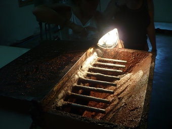 Das Foto gehört zur Serie "Kakao". Es zeigt eine Kakaomühle. Es gelten die Nutzungsbedingungen der Mediothek und Pixiothek.