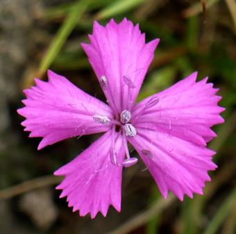 Das Foto gehört zur Serie "Blüten auf einem Thüringer Zechsteinriff". Es zeigt die Blüte einer Kartäusernelke (Dianthus carthusianorum). Es gelten die Nutzungsbedingungen der Mediothek und Pixiothek.