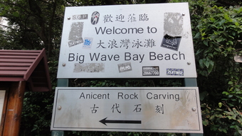 Das Foto gehört zur Serie "Hong Kong Trail". Es zeigt das Schild zum Big Wave Bay Beach in Tai Long Wan. Es gelten die Nutzungsbedingungen der Mediothek und Pixiothek.