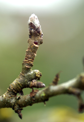 Das Foto gehört zur Serie "Obstbäume". Es zeigt eine Knospe an einem Apfelbaum. Das Bild ist unter CC0 lizenziert und kann somit frei verwendet werden.