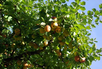 Das Foto gehört zur Serie Obstbäume. Es zeigt einen Apfelbaum der Sorte "Schöner aus Boskoop", in Deutschland kurz Boskop genannt. Bokop-Äpfel sind Lageräpfel bzw. Winteräpfel. Das Bild ist unter CC0 lizenziert und kann somit frei verwendet werden.