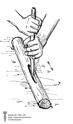 Das Bild gehört zur Serie "Zeichnungen Steinzeit - Museum für Ur- und Frühgeschichte Thüringens". Abgebildet ist eine Möglichkeit, um Feuer zu machen. Es gelten die Nutzungsbedingungen der Mediothek und Pixiothek.