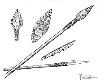Das Bild gehört zur Serie "Zeichnungen Steinzeit - Museum für Ur- und Frühgeschichte Thüringens". Abgebildet sind Gegenstände der Jäger und Sammler. Es gelten die Nutzungsbedingungen der Mediothek und Pixiothek.