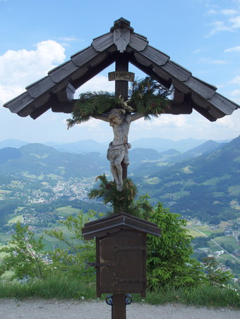Das Bild gehört zur Serie "Alpen". Es zeigt ein religiöses Kleindenkmal am Wegrand (Flurkreuz, Heiligenstock, Bildstock, in Österreich und Bayern auch als Marterl bezeichnet). Das Bild ist unter CC0 lizenziert und kann somit frei verwendet werden.