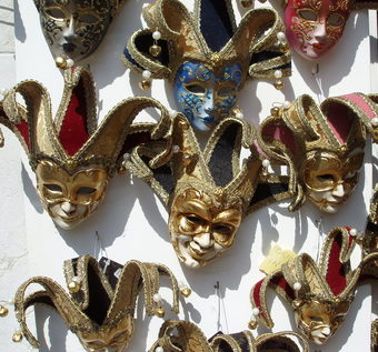 Das Bild gehört zur Serie "Venedig". Es zeigt Masken in Burano, einer Insel in der Lagune von Venedig.. Das Bild ist unter CC0 lizenziert und kann somit frei verwendet werden.