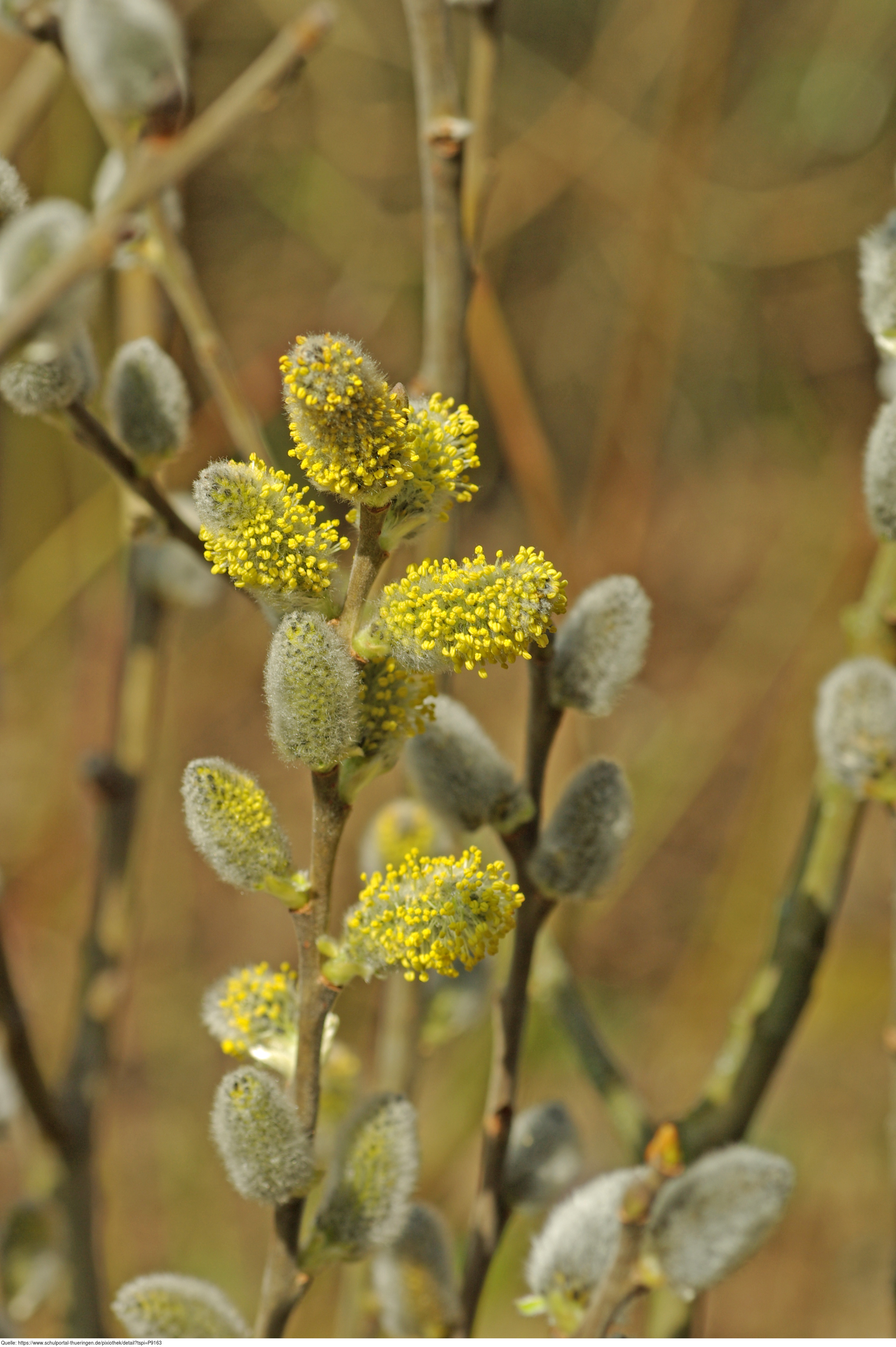 Das Foto gehört zur Serie "Laubbäume". Es zeigt Weidenkätzchen d. h. Blütenkätzchen der Weiden (Salix). Das Bild ist unter CC0 lizenziert und kann somit frei verwendet werden.