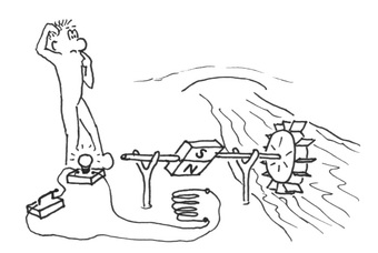 Das Foto gehört zur Serie "Paul". Es zeigt Paul bei der Erzeugung von Elektroenergie aus Wasserkraft. Das Bild ist unter CC0 lizenziert und kann somit frei verwendet werden.